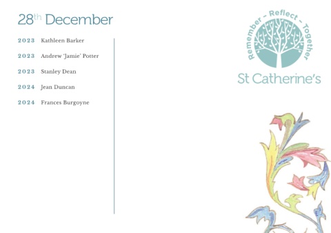 28 December th 2023 Kathleen Barker 2023 Andrew ‘Jamie’ Potter 2023 Stanley Dean 2024 Jean Duncan 2024 Frances Burgoyne